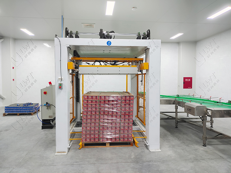 空罐卸垛主要由升降機構(gòu)圖、移栽機構(gòu)、磁力吸取機構(gòu)、輸送線及電氣控制組成,工作方式采用磁力吸取移栽型??膳涮状帕ι递斔拖到y(tǒng),實現(xiàn)空中輸送及不同樓層輸送。