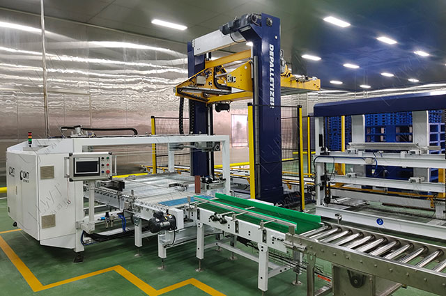 卸垛機(jī)/拆垛機(jī)主要適用于整垛的馬口鐵、玻璃瓶等空罐的自動(dòng)卸垛拆垛,它將堆疊于棧板上的空罐,由下而上一層層的提升并分層推至輸送道上,可節(jié)省大量人力,提高生產(chǎn)效率。