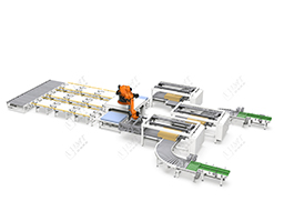 機器人碼垛機是機電一體化高新技術產品。中、低位碼垛機可以滿足中低產量的生產需要??砂凑找蟮木幗M方式和層數(shù),完成對料袋、膠塊、箱體等各種產品的碼垛。精密的設計使得垛形緊密、整齊。